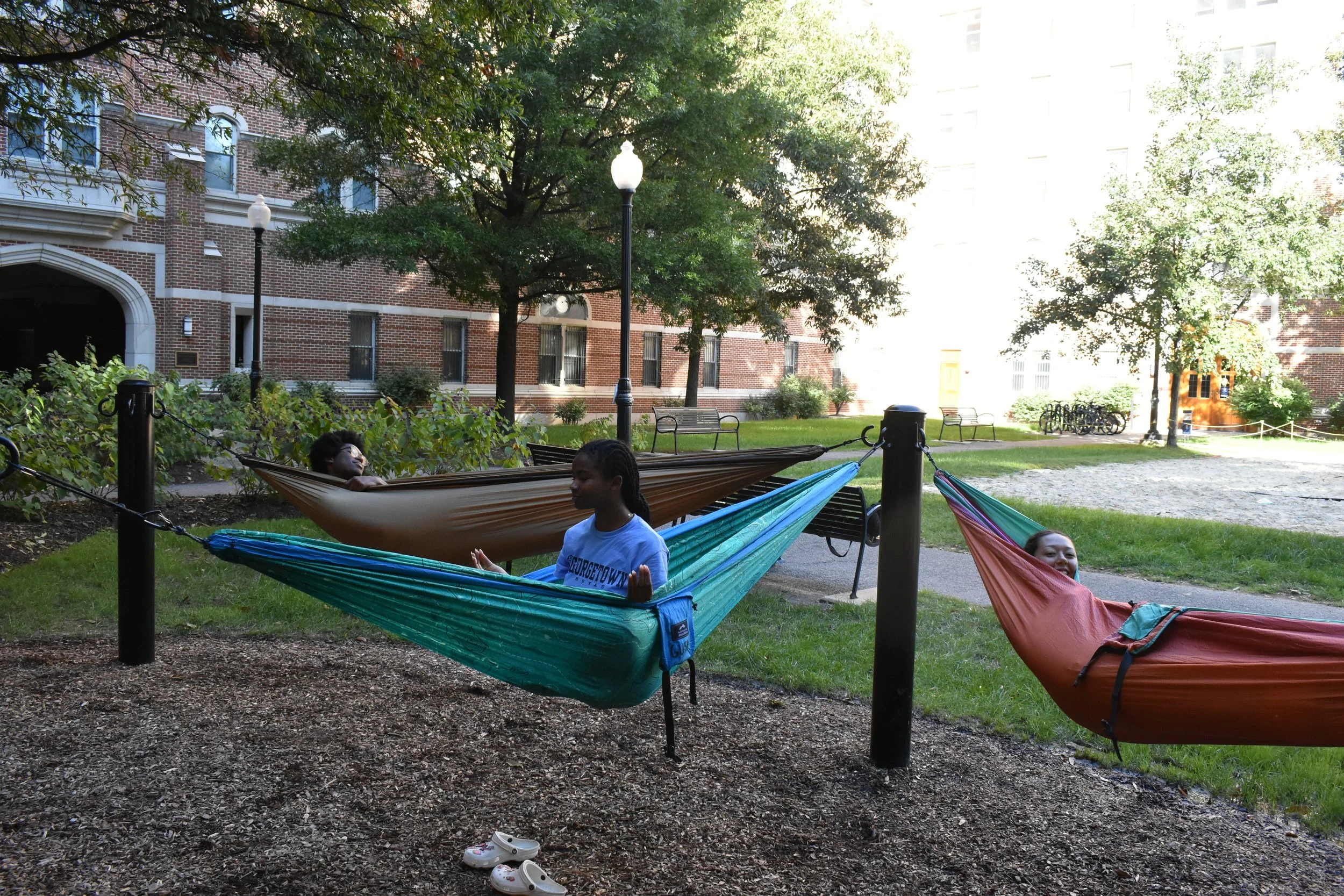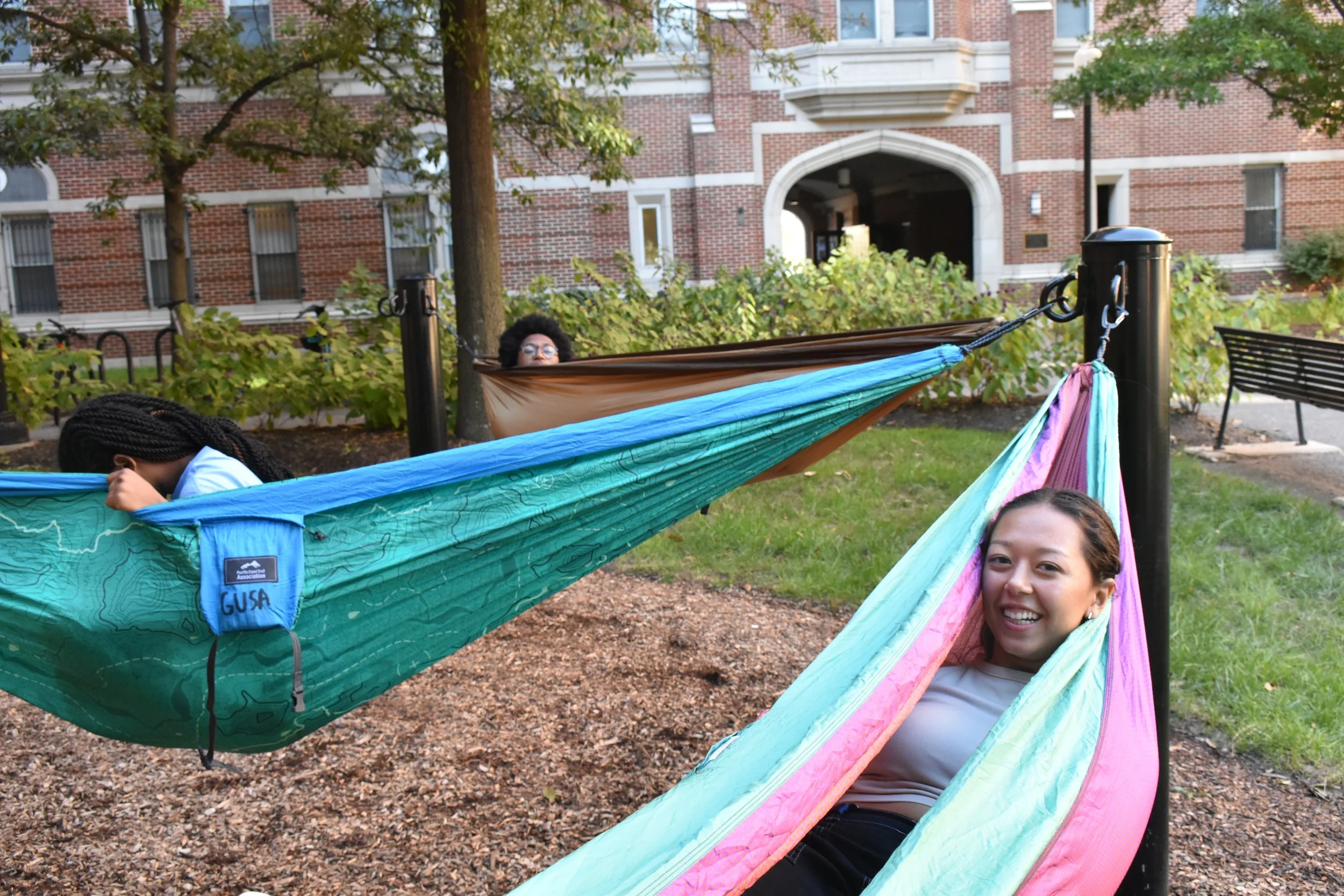 GUSA hammocks are now available to rent in the HFSC. They can be used in our new dedicated hammock area with posts in Southwest Quad, next to the volleyball courts.